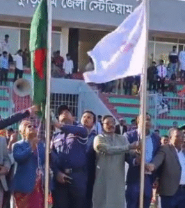 হাইকোর্ট থেকে ভারতীয় নাগরিক হিসাবে রুলজারীকৃত মোস্তাফিজার রহমান মোস্তফা ডিসি অন্নপূর্ণা দেবনাথের সংগে পতাকা উত্তোলন করছে।
